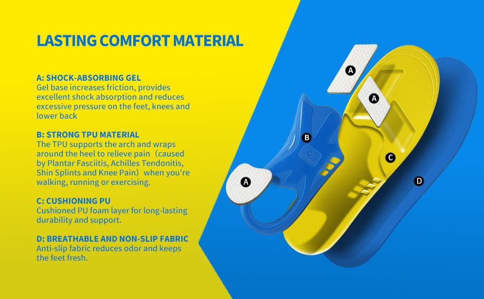- 【Shock absorbing gel】 patterned gel base help to increase friction and provide excellent shock absrobing ability, helping reduce excessive pressure on the forefoot and heel area;